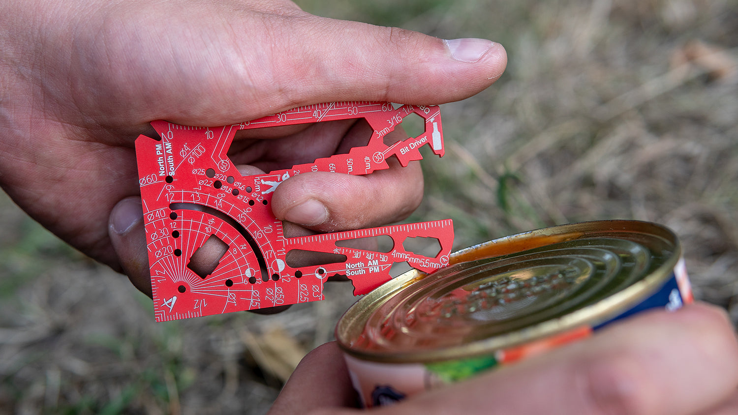 A compact tool for opening canned food, especially useful for hiking or survival situations. It provides quick access to food, which is convenient for camping or hiking when a regular can opener is not available. In emergency situations, when food is a resource for survival, this can opener will become indispensable.